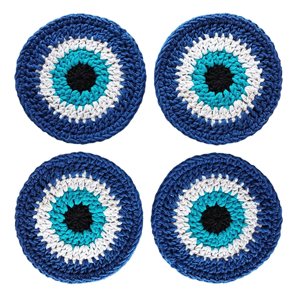 Kit com 4 porta-copos superfofos feitos à mão em crochê para uma decoração mais afetiva.